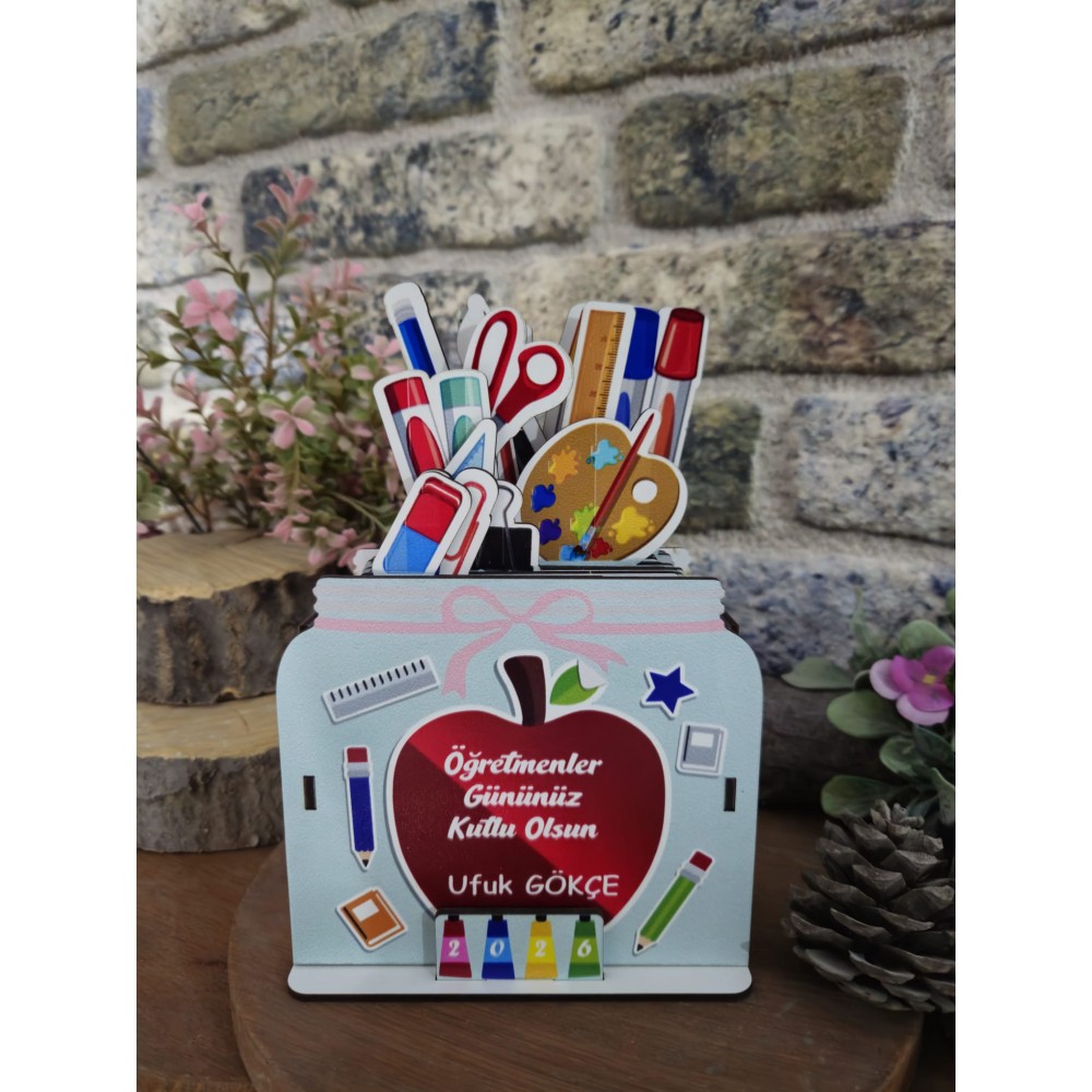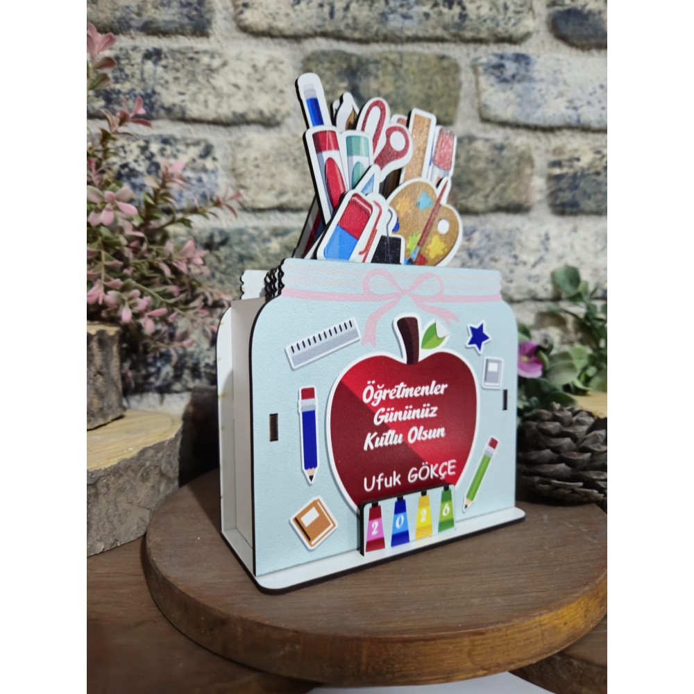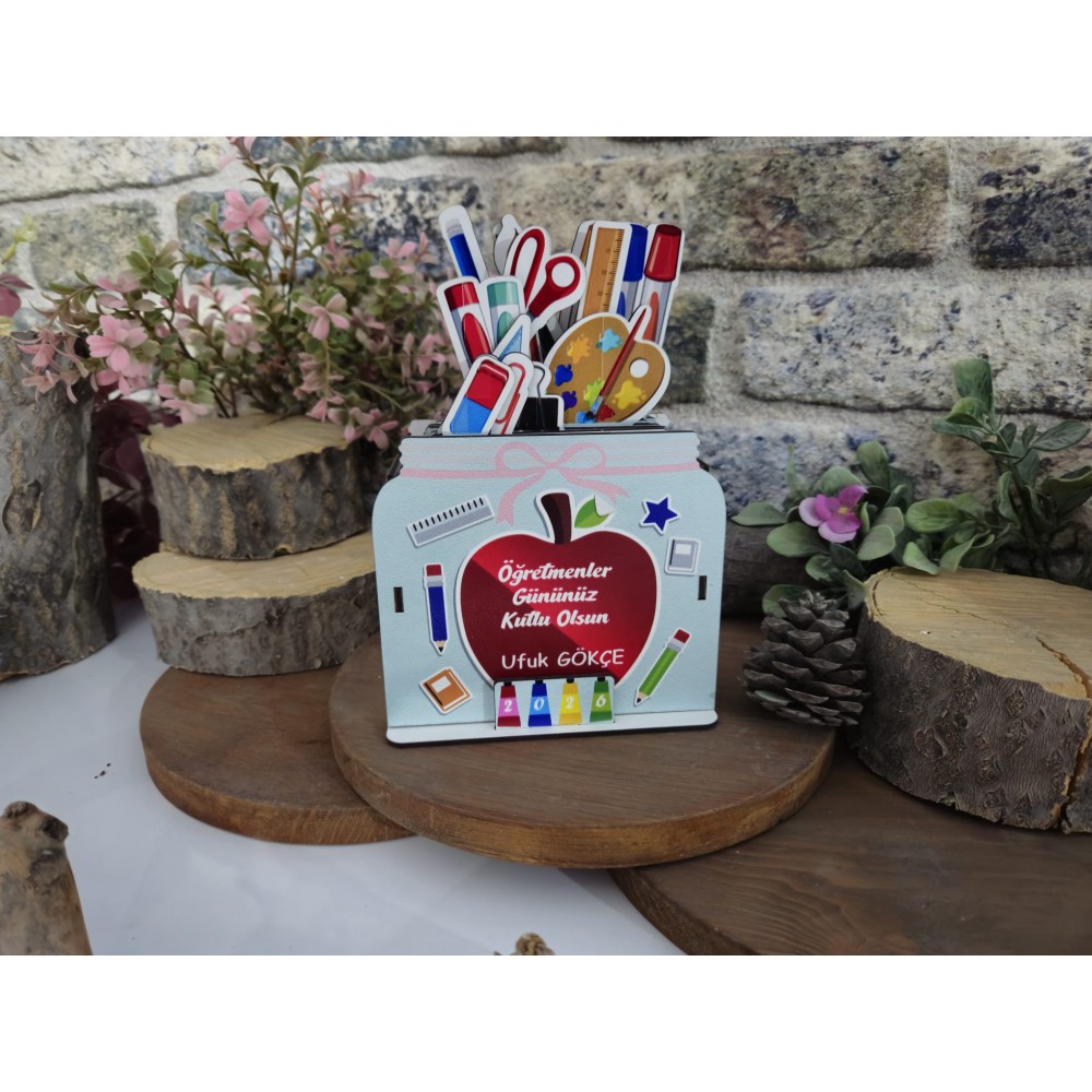 Ahşap Kalemlik ve Takvim Seti 24 Kasım Öğretmenler Günü Hediyesi