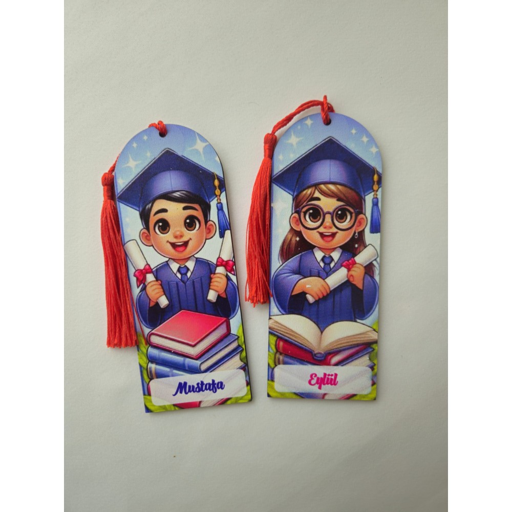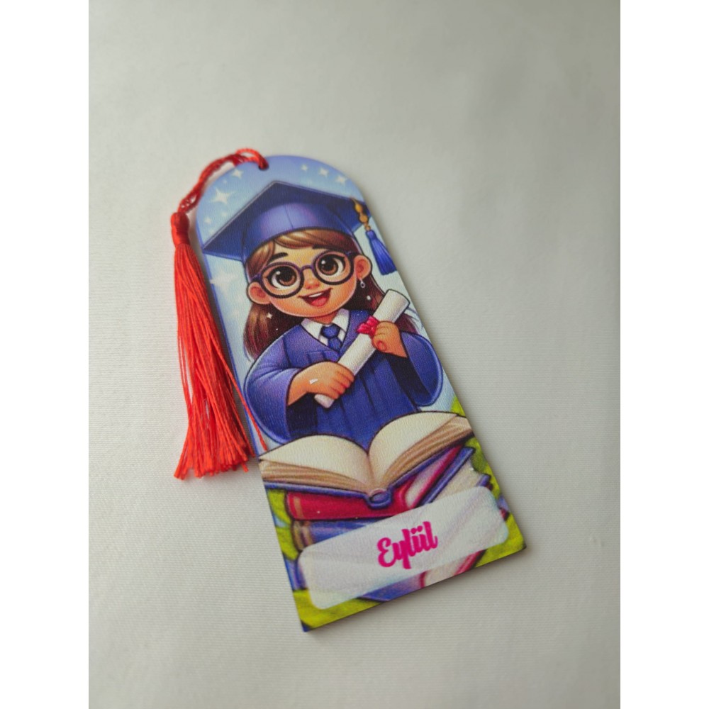 İsme Özel Mezuniyet Kız Erkek Baskılı Püsküllü Kitap Ayracı