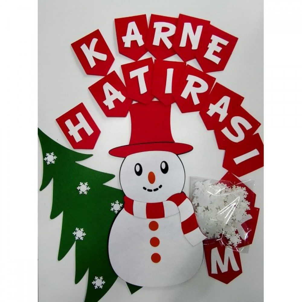 Yarıyıl tatili karne etkinlikleri kapsamında kullanabileceğiniz Kış Temalı Karne Hatırası Pano Süsleme Paketi içeriğinde 1 adet Kardan Adam, 1 Adet çağ ağacı, 1 set flama yazı, 20 Büyük kar tanesi ve 40 küçük kar tanesi bulunmaktadır.